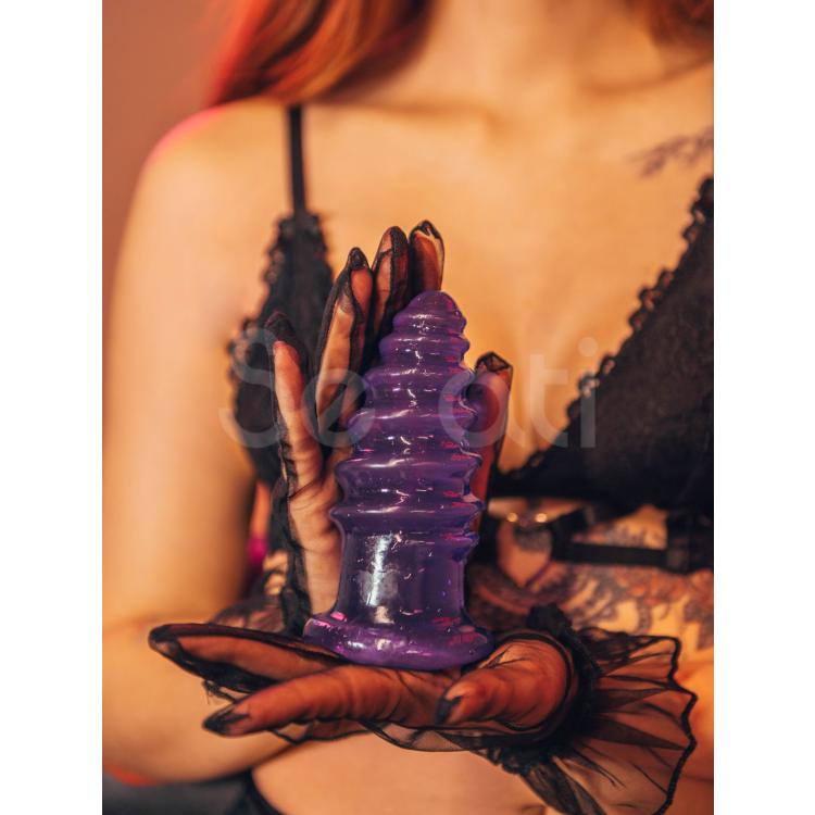 Ввинчивающаяся анальная пробка - это настоящий тренд среди секс-игрушек! Она оснащена спиралями, благодаря которым создается приятное воздействие на эрогенные зны ануса, подходит для стимуляции простаты, мастурбации и любых других анальных практик. С помощью большой анальной пробки можно подготовить организм к анальному сексу, благодаря чему он пройдет более комфортно, приятно и безболезненно. Анальная пробка для ношения выполнена в стильном фиолетовом цвете и оснащена удобной присоской, помогающей закрепить анальную игрушку на любой гладкой поверхности, как горизонтальной, так и вертикальной. Можно использовать в ванной или душе. Общая длина -14 см.
