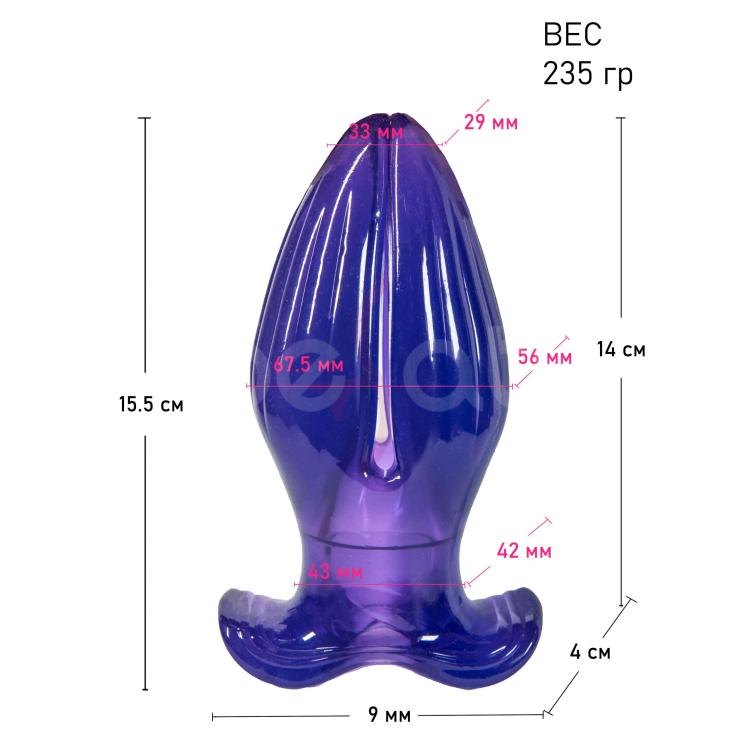 Фиолетовая анальная пробка, раскрывающаяся внутри вашего тела способна изменить ваше привычное представление об анальных утехах. Это будет совершенно новый и необычный чувственный опыт. Такая секс-игрушка идеальна как для простой анальной стимуляции, так и для массажа простаты. Анальная пробка для ношения выполнена из термопластичного эластомера, упругого и гипоаллергенного материала. Есть ограничитель, который не позволит анальному плагу большого размера пройти дальше, чем нужно. Общая длина - 15.5 см.