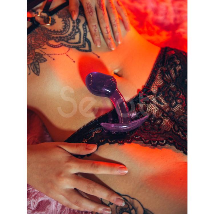 Фиолетовая анальная пробка позволит вам окунуться в необычные ощущения и почуствовать анальную стимуляцию такой, какой она должна быть - яркая, чувственная и сладострастная. Такую анальную пробку можно использовать и для ношения во время прогулок или повседневных забот, и с партнером во время близости, чтобы усилить чувства и сблизиться еще сильнее. А массаж простаты с помощью этой необычной анальной пробки принесет вам сильнейший оргазм и окажет полезное воздействие на мужское здоровье. Сама пробка выполнена в виде головки полового члена, что добавит натуралистичности вашим ощущениям. Общая длина - 11.5 см.