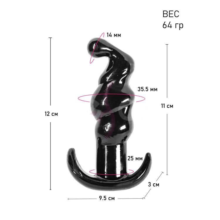 Анальная пробка необычной абстрактной формы в виде соединенных между собой обтекаемых частей несомненно покажется вам замечательной идеей как во время подготовки к анальному сексу, так и в качестве анальной пробки для ношения. Идеальный БДСМ аксессуар - глянцевый, черный и безумно стильный подчеркнет ваш вкус и избирательность в глазах вашей партнерши или партнера. Изгиб на конце позволяет выполнить приятный массаж простаты и осуществить дополнительную стимуляцию во время классического секса. Общая длина - 12 см.