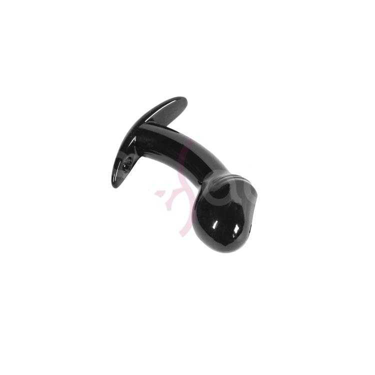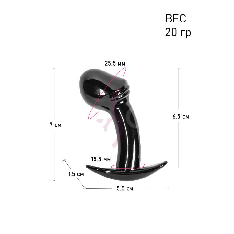 Внешний вид этой черной анальной пробки очень привлекательный и возбуждающий - ее конец выполнен таким образом, что по своей форме напоминает головку мужского члена. Данный анальный плаг придется по вкусу любителям анального секса - поможет подготовить анус к пенетрации, а так же с его помощью можно выполнить стимуляцию простаты, от которой оргазм многократно ярче, чем от простой стимуляции члена. Секс-игрушка полностью безопасна - у нее обтекаемая форма, а так же ограничитель, благодаря которому ее можно спокойно носить внутри во время повседневных дел. Общая длина - 7 см.