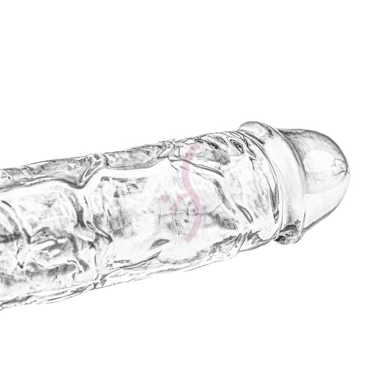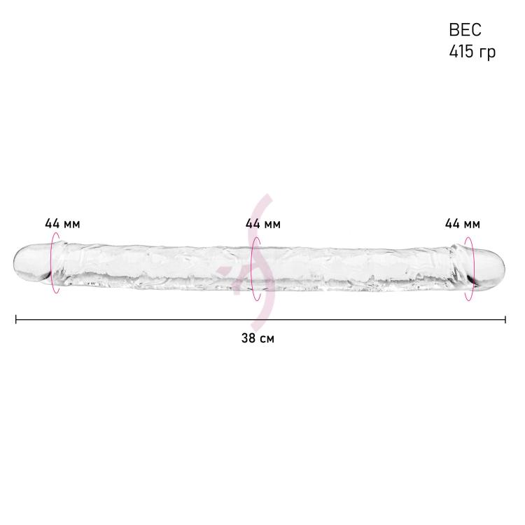 Секс-игрушка, которая вам подарит море наслаждения и чувственного удовольствия - двусторонний фаллоимитатор. Отлично подойдет для вагинальной стимуляции точки G и клитора, а так же массажа простаты. Двусторонний дилдо можно использовать как для мастурбации, так и для игр в паре, для того, чтобы разнообразить и укрепить интимные отношения. Хорошо гнется, поэтому прозрачный фаллос будет хорош в двойном проникновении, которое унесет вас на вершины сладострастия. Сделан из высококачественного и упругого материала, реалистично выражены венки и головка, которые благодаря своему рельефу обеспечат дополнительную стимуляцию. Рекомендуется использование со смазкой на водной основе. Общая длина - 38 см.