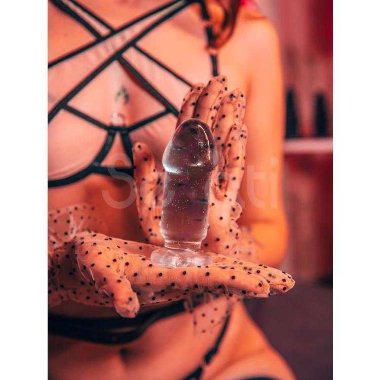 Прозрачный фаллоимитатор - идеальная находка для тех, кто предпочитает нестандартные и яркие удовольствия от стимуляции простаты и ануса. Форма анального фаллоимитатора выполнена таким образом, что он легко и приятно входит в анус, постепенно расширяя стенки кишечника, а благодаря своей обтекаемой конструкции пенетрация будет проходить безболезненно и аккуратно. Такую секс-игрушку можно использовать как во время одиночной мастурбации, так и при парных играх. Данная анальная пробка незаменима при подготовке к анальному сексу, а размер подойдет и опытным пользователям, и новичкам, которые только постигают грани новых ощущений. На дилдо имеется удобная присоска для мастурбации без использования рук - прозрачный дилдо крепится к гладкой поверхности, его можно использовать в ванной или душе. Общая длина - 12 см.