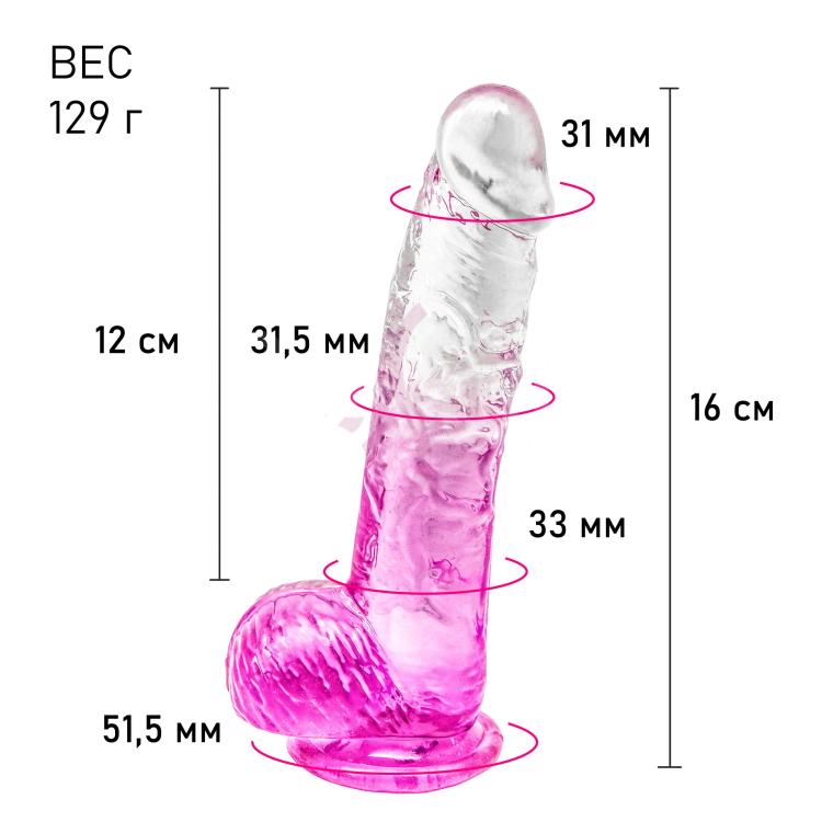 Этот уникальная секс игрушка имеет форму и текстуру настоящего мужского члена, что делает его очень реалистичным. Он выполнен из мягкого и гибкого материала, который приятно ощущается на нежной коже половых органов. Дополнительное преимущество этого фаллоимитатора - присоска, которая позволяет закрепить его на любой гладкой поверхности для руководства своими фантазиями и освободить руки. Дилдо подходит как для анального проникновения, так и для стимуляции влагалища, клитора и точки G. Доступны к заказу 5 размеров.
