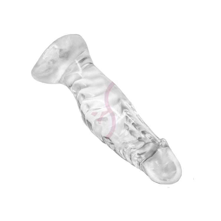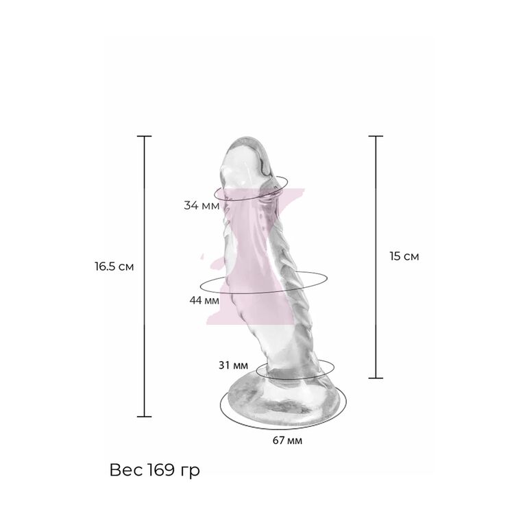 Прозрачный дилдо анатомической формы предназначен для бережной и чувственной стимуляции ануса и простаты. Анальный фаллоимитатор легко и приятно ложится в руку, а наличие присоски позволит разнообразить мастурбацию - дилдо крепится к любой гладкой поверхности и надежно держится даже во время активных фрикций. Выраженная головка, как у настоящего идеального члена, и рельеф самого ствола доставит массу эротических удовольствий вашим самым чувствительным точкам и доведет до яркого головокружительного оргазма. А для более сильного удовольствия и безопасности рекомендуется использование смазки на водной основе - достаточно нанести на кончик и распределить по длине дилдо. Так же в середине анальной пробки имеется расширение для того, чтобы постепенно и аккуратно увеличивать растяжение ануса для самых ярких ощущений. Общая длина - 17 см.