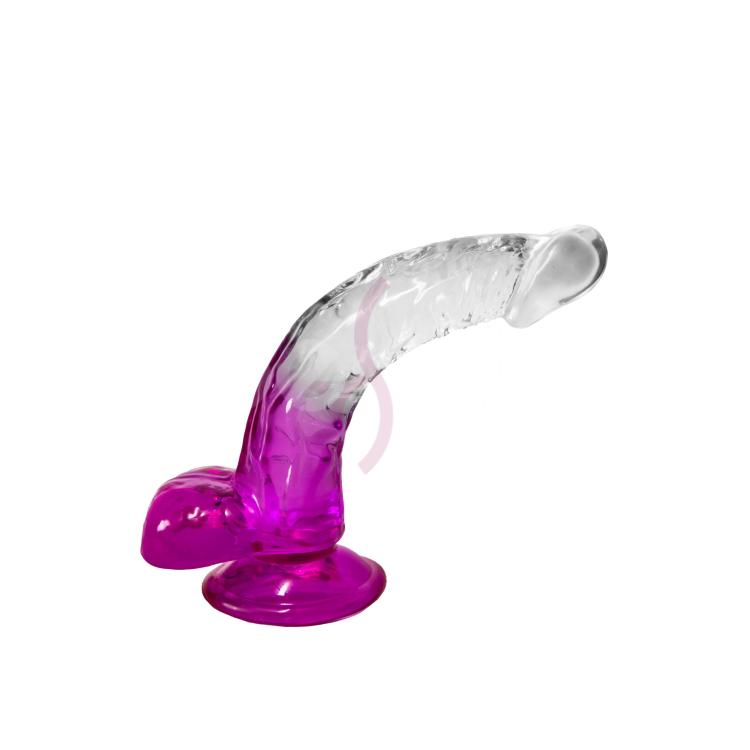 Этот изысканный товар для взрослых сочетает в себе реалистичный дизайн, проработанный до мельчайших деталей - рельефный ствол, ярко выраженная головка, упругие яички. Необычный градиентный окрас - прозрачный с фиолетовым - доставит эстетическое наслаждение. Мощная присоска обеспечивает надежную фиксацию дилдо на любой гладкой поверхности, освобождая руки для новых экспериментов и позволяя полностью погрузиться в мир удовольствия. Изготовленный из безопасного и гипоаллергенного медицинского силикона, прозрачный дилдо идеально подходит для вагинального, анального или комбинированного использования. Одинокие девушки найдут в анальном фаллоимитаторе верного спутника для исследования своей сексуальности и достижения невиданных ранее уровней блаженства от стимуляции клитора и точки G. Пары смогут добавить пикантности в свои отношения, открыв новые эротические горизонты и укрепив близость. Легко чистится водой с мягким мылом. Общая длина - 17,5 см.