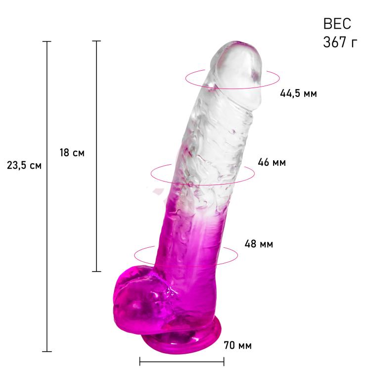 Этот уникальная секс игрушка имеет форму и текстуру настоящего мужского члена, что делает его очень реалистичным. Он выполнен из мягкого и гибкого материала, который приятно ощущается на нежной коже половых органов. Дополнительное преимущество этого фаллоимитатора - присоска, которая позволяет закрепить его на любой гладкой поверхности для руководства своими фантазиями и освободить руки. Дилдо подходит как для анального проникновения, так и для стимуляции влагалища, клитора и точки G. Доступны к заказу 5 размеров.