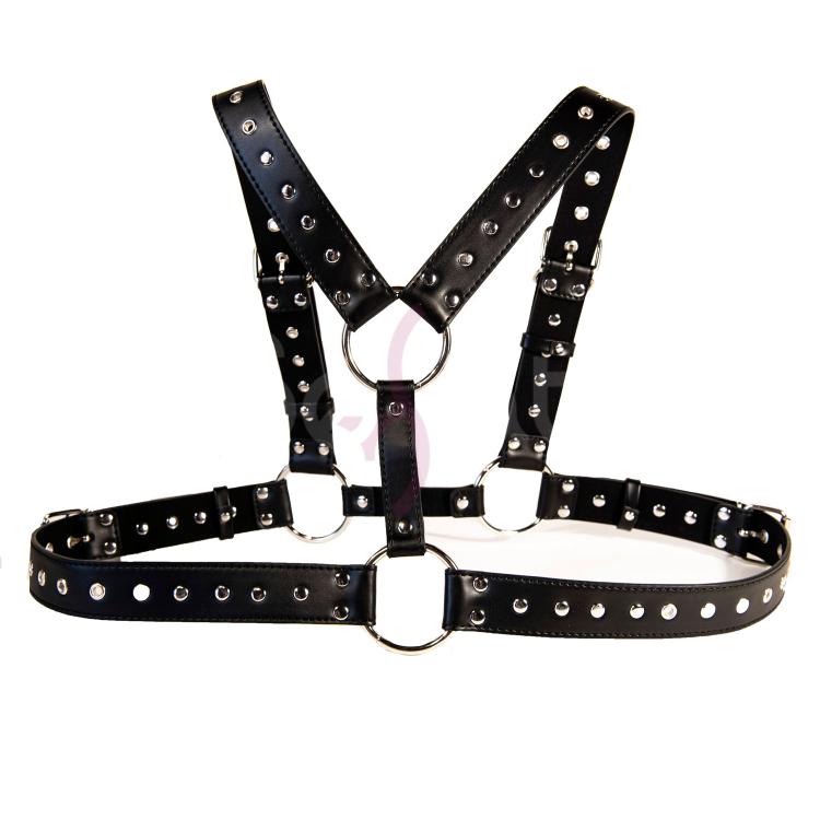 Мужская портупея из экокожи станет вашим любимым аксессуаром для БДСМ игр. Любая женщина будет очарована и покорена красотой сочетания мужского тела и брутальных черных ремней, обрамляющих грудь и спину. Портупея для ролевых игр выполнена из качественной экокожи, не натирает и идеально смотрится на теле. Регулируемый размер секс игрушки делает ее подходящей для абсолютно любого типажа. Регулируемый размер, 65-116 см