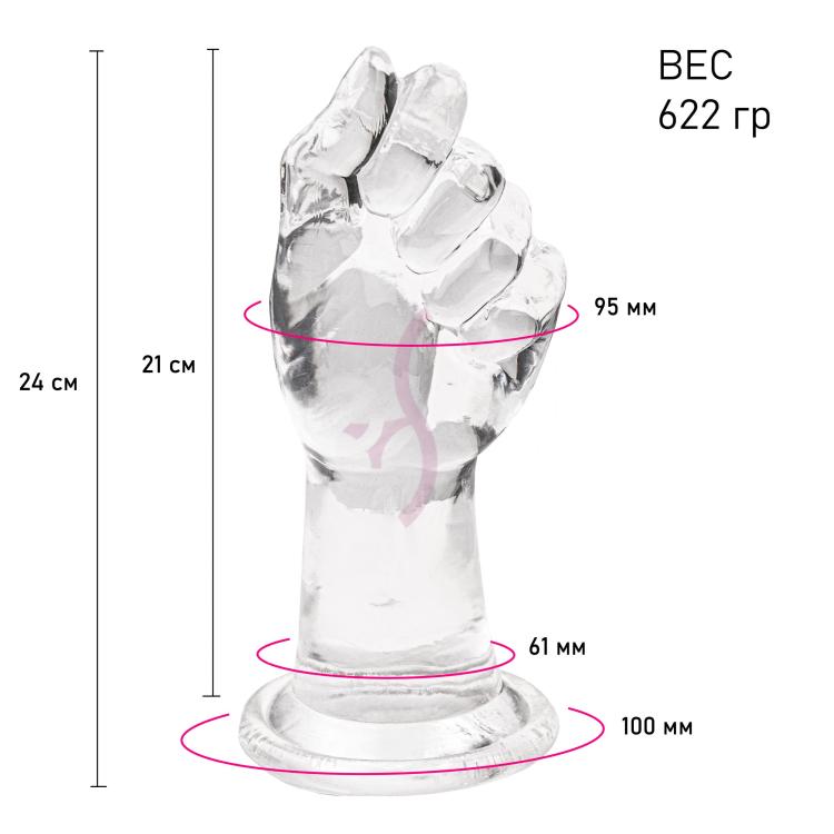 Секс игрушка в виде руки, сжатой в кулак, подойдет для фистинга и разработки анального отверстия - только для самых смелых и опытных пользователей. Поможет разнообразить интимные отношения, почувствовать новые ощущения от стимуляции самых потаенных зон. Станет прекрасным подарком для любителей фетиш, БДСМ, садо-мазо, ролевых игр. Рука для фистинга отлита из упругого и высококачественного прозрачного материала, ее легко хранить и очищать, а так же можно использовать в ванной или душе. Идеальное решение для безопасного и чувственного фистинга, для тех, кому хочется попробовать нечто новое и отвлечься от анальных пробок, плагов, анальных дилдо, фаллоимитаторов, бус, анальных елочек. Длина - 24 см, рабочая длина 22 см, диаметр 9 см, диаметр присоски 10 см.