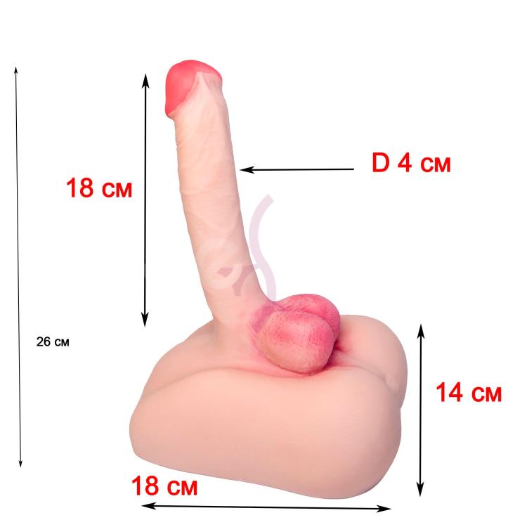 Секс-кукла с фаллосом и мошонкой - универсальная секс-игрушка для тех, кто хочет разнообразить мастурбацию и интимную жизнь в паре. Она оснащена длинным фаллосом с выраженной головкой для лучшей стимуляции, мошонкой и анусом, в который так приятно входить. Особенно используя смазку на водной основе. Мастурбатор выполнен из реалистичного материала, который по своей упругости и текстуре очень близко напоминает кожу реального человека. Длина и форма фаллоса позволяет выполнить качественную и чувственную стимуляцию простаты и таких эрогенных зон, как клитор, точка G и стенки влагалища. Длина реалистичного дилдо - 18 см.