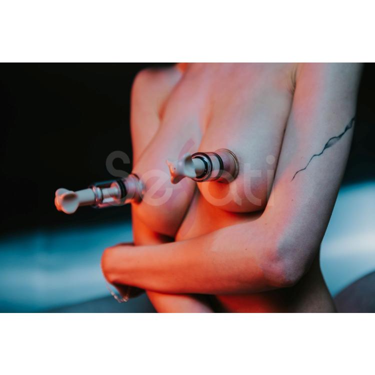 Вакуумные стимуляторы для сосков - возбуждающая БДСМ секс игрушка. От вакуумного давления соски становятся увеличенными и более чувствительными к ласкам и стимуляции. Безболезненны и безопасны, а так же имеют свою пользу для подготовки к кормлению ребенка. Удобная и эргономичная конструкция вакуумных помп позволяет быстро и легко создать нужный вакуум в эрогенных зонах - они так же подойдут и для стимуляции клитора. Достаточно просто приложить их к желаемой части тела и начать постепенно выкачивать воздух с помощью поршней. Доступны два цвета и разные размеры. Внутренний диаметр 2.5 см.
