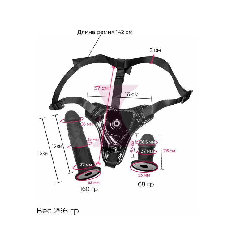 Эти трусики оснащены съемными фаллоимитаторами, в комплекте два дилдо разных размеров. Страпон для анала станет самой настоящей жемчужиной в вашей коллекции необычных секс-игрушек. Размер трусиков легко регулируется с помощью удобных ремней, обеспечивая идеальную посадку по фигуре. Фаллоимитаторы сделаны из качественного силикона, они съемные, что дает возможность использовать их отдельно для индивидуальных игр или комбинировать для максимального наслаждения. Почувствуйте себя уверенно и желанно, исследуя смелые фантазии и даря незабываемое удовольствие себе и своему партнеру. С этими трусиками со страпоном возможности безграничны! Рабочая длина большого фаллоса - 15 см, длина малого фаллоса - 6,5 см.