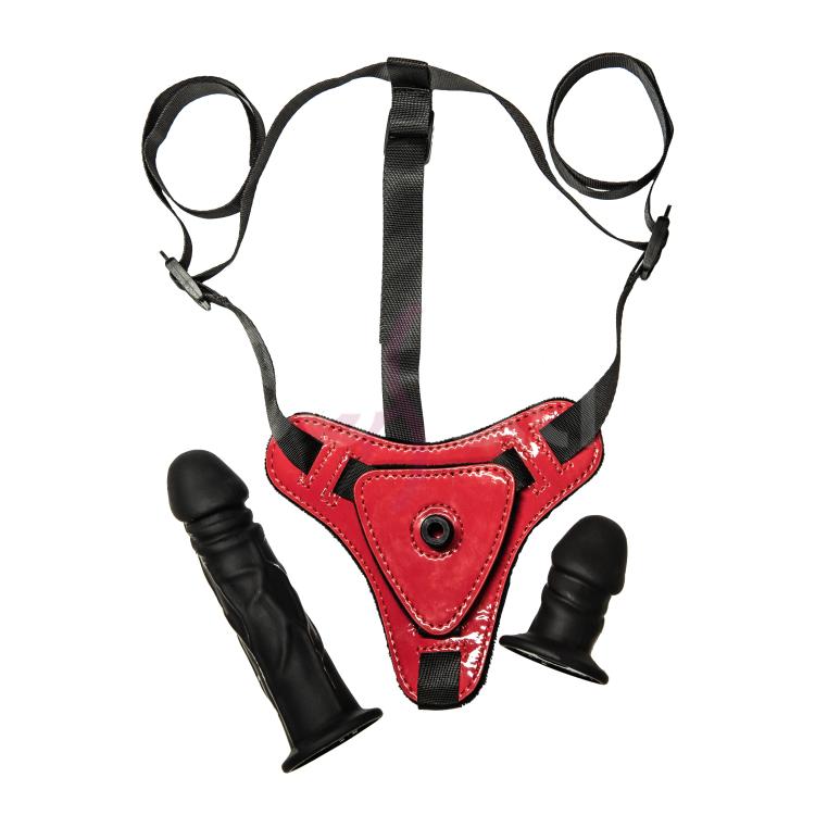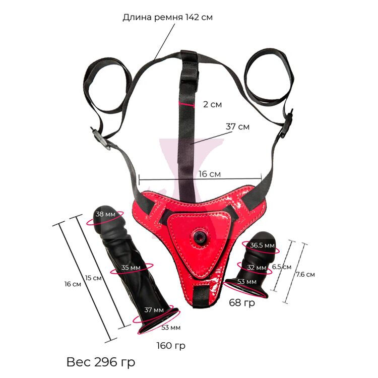Данный страпон - чудесная возможность разнообразить сексуальную жизнь и позволить женщине иногда побыть в доминирующей роли. Несомненно, это поможет сильнее сблизиться и влюбиться в свою вторую половинку по-новому. Страпон для анала представляет собой специальные трусики, к которым легко и надежно крепятся фаллоимитаторы - их можно чередовать и менять под ваше настроение. Прекрасный и интригующий способ получить новое волнительное удовольствие. Размер трусиков регулируется с помощью ремней, их легко закрепить на теле и они не будут сползать или натирать кожу. Сами фаллоимитаторы можно использовать и по отдельности, в качестве анальной пробки и дилдо. Черные и соблазнительные, они выполнены с анатомическими подробностями, а это значит что стимуляция будет точно такой же, как с настоящим мужским половым членом. Рабочая длина большого фаллоса 15 см, диаметр 3,5 см, рабочая длина малого фаллоса 6,5 см диаметр 3,2 см.