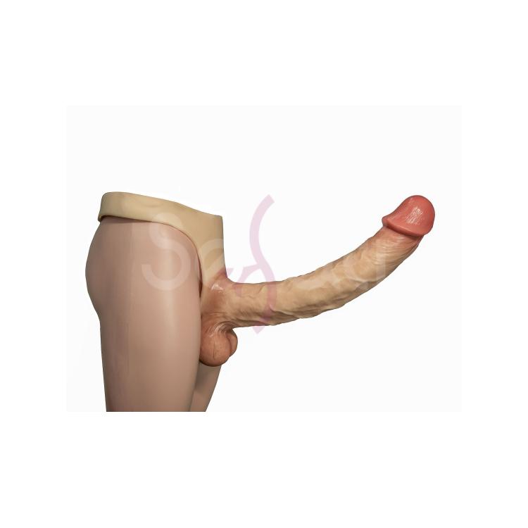 Этот страпон с трусиками словно сошел в наш магазин из самых волнительных фильмов для взрослых. Анатомический фаллоимитатор в точности повторяет цвет, форму и изгибы настоящего полового члена, он доставит удовольствие как мужчине, так и девушке. Трусики удобно сидят на теле, не сползая даже во время активных фрикций. Можно использовать и в качестве страпона, и в качестве насадки на член, чтобы удивить и порадовать вашу партнершу. Такой размер члена подарит бурный оргазм от стимуляции влагалища, клитора и конечно же точки G. Нестандартный большой размер - общая длина 50 см, рабочая длина 44 см станет настоящим подарком и приятным сюрпризом для любого человека.