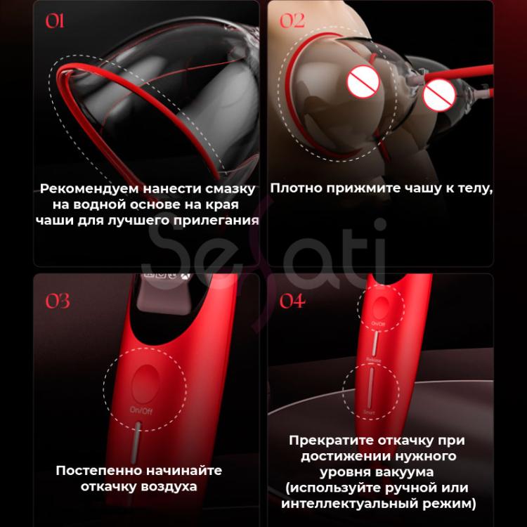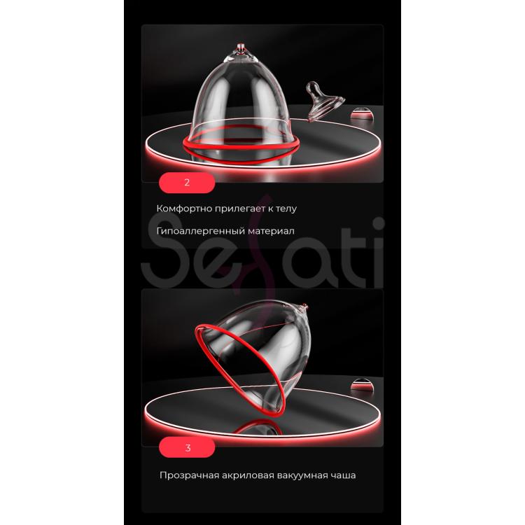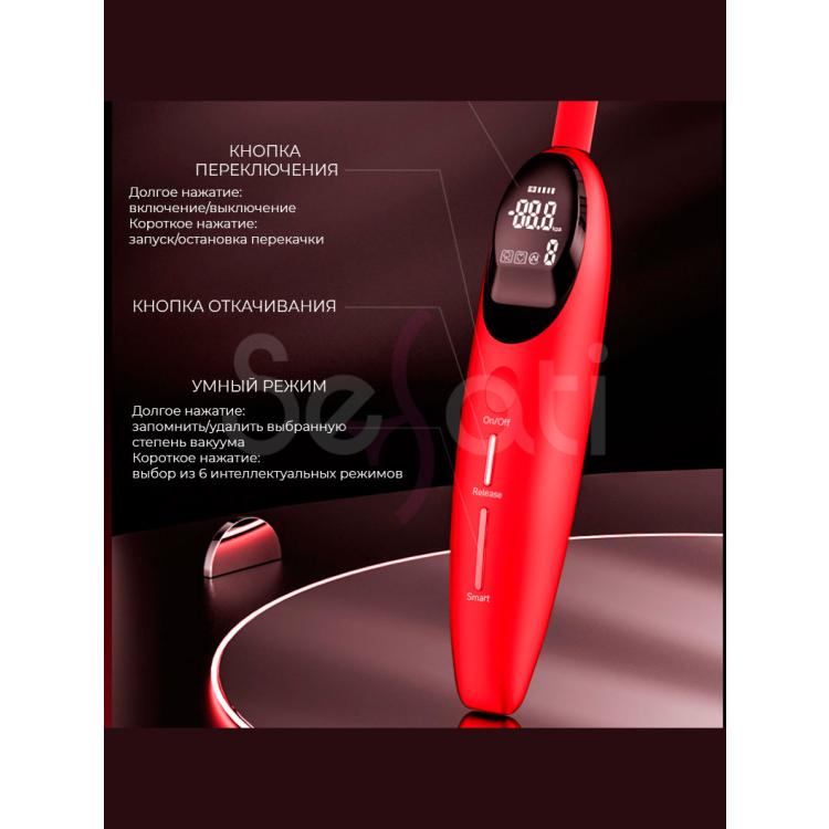 Вакуумная помпа для груди - то, что нужно для качественной стимуляции молочных желез. Доставляет приятные ощущения, а так же является замечательным помощником в подготовке груди для кормления, подойдет беременным и кормящим женщинам. Мягко и безболезненно увеличивает грудь, при этом доставляя сексуальное возбуждение. Система с интеллектуальным циклом вакуума позволяет легко достичь нужного уровня давления, интуитивно понятное управление приятно вас удивит. Секс-игрушка легко разбирается, а так же на ней есть специальный ЖК-дисплей, который показывает уровень вакуума, состояние батареи, а также выбранный режим преобразования частоты - их 6, поэтому можно выбрать любой под свой вкус и настроение.