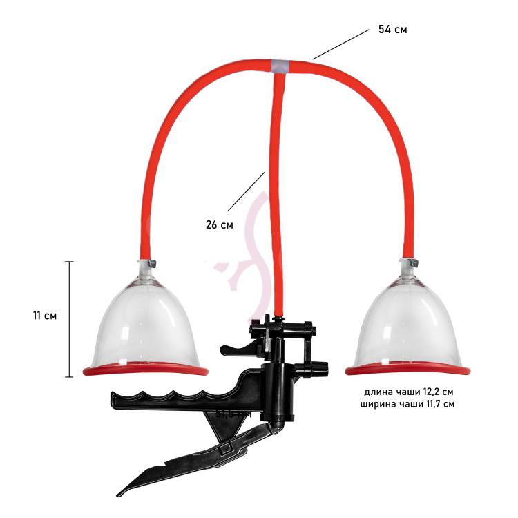Вакуумная помпа оборудована мягкими насадками, которые обеспечивают комфортное и безопасное использование. Просто наденьте насадки на грудь, нажимайте на рычаг и наслаждайтесь приятным массажем и увеличением объема груди.