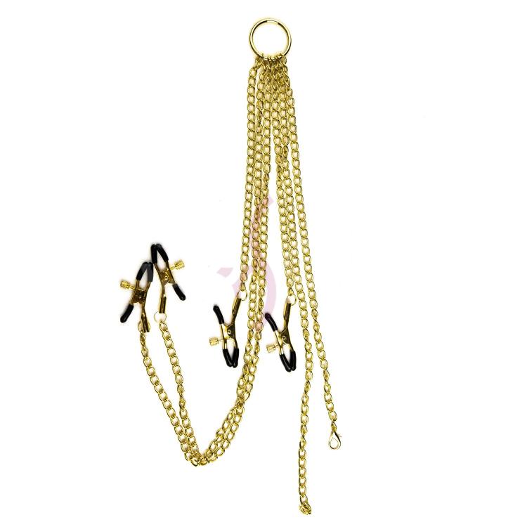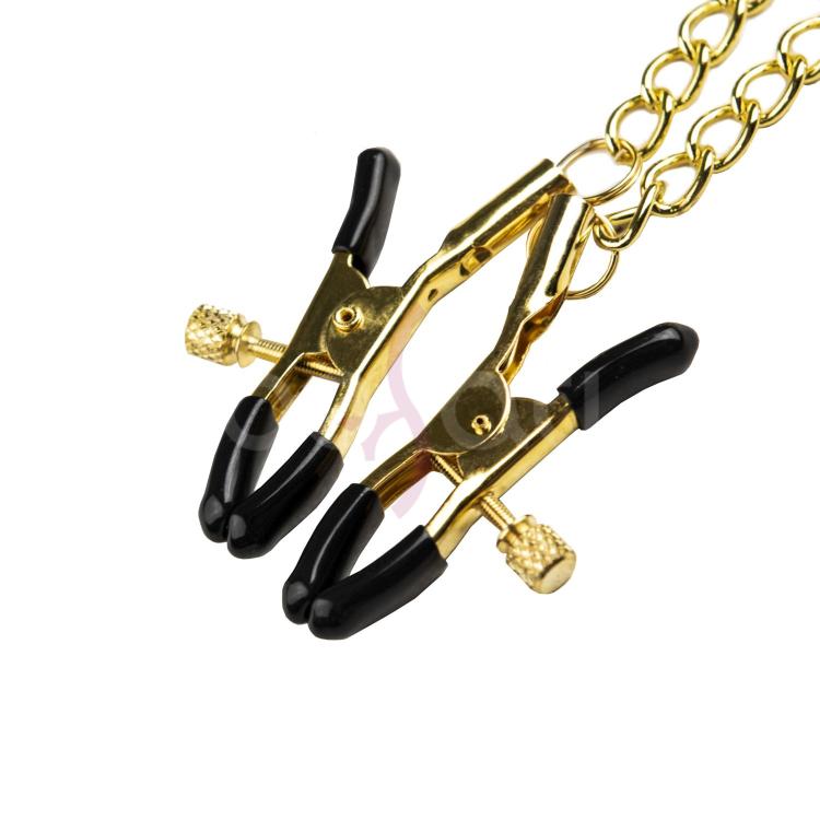 Зажим для сосков и половых губ - замечательный подарок для девушек, которые любят пожестче. Это безопасная секс-игрушка, которая идеально подойдет для стимуляции сосков, половых губ, а так же клитора. Незаменимая вещь в БДСМ и садо-мазо практиках, когда нужно напомнить своей второй половинке, кто тут Господин. Силу сжатия можно легко регулировать с помощью специальных закручивающихся элементов на зажимах, они соединены между собой прочными цепями, что добавляет эстетики в образ. Застегиваются на шее.