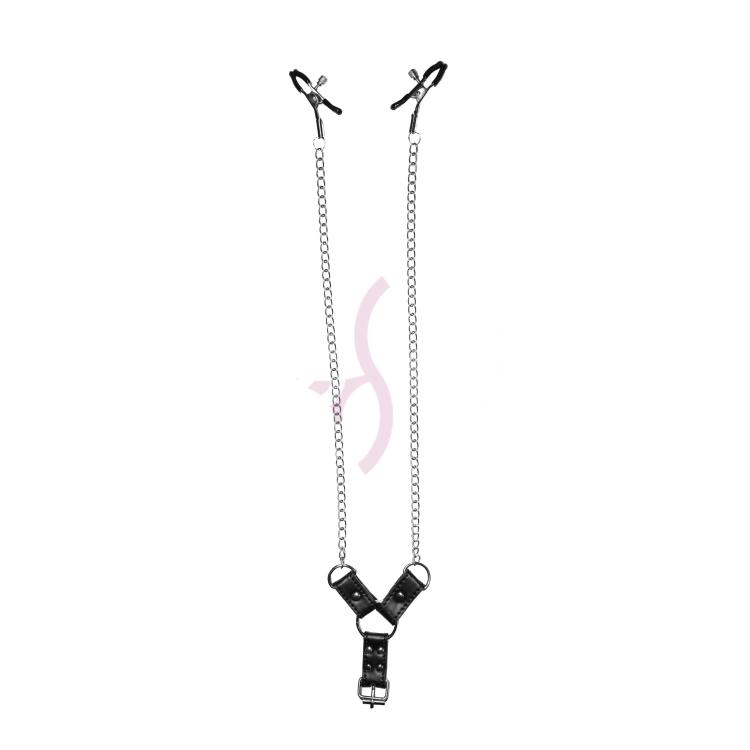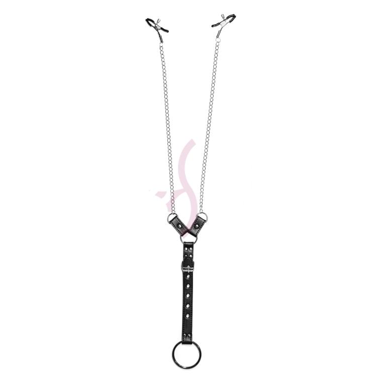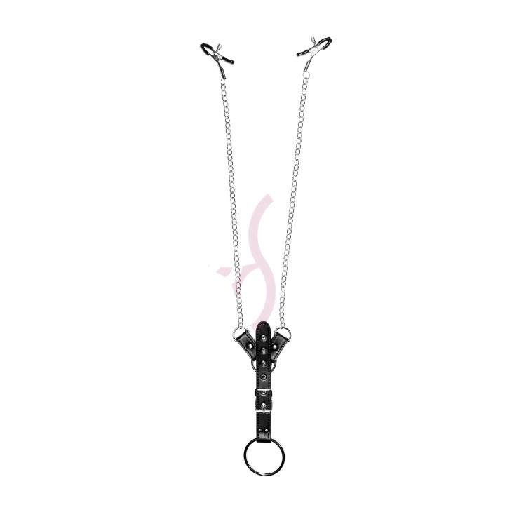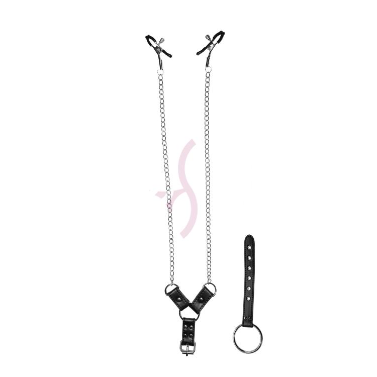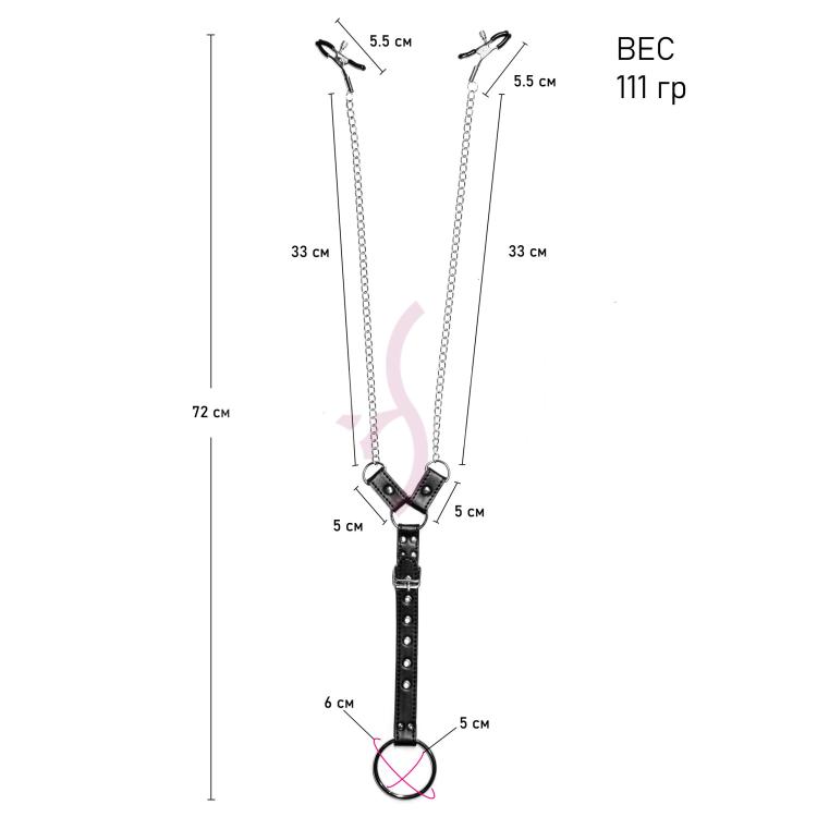 Зажим для сосков с эрекционным кольцом подарит вам и вашему партнеру незабываемые мгновения, полные новых ощущений и эмоций. БДСМ игрушка представляет собой два зажима, соединенных с металлическим эрекционным кольцом цепями и ремнями. Такой товар для взрослых подойдет как для нижнего, так и для верхнего партнера. Зажимы для сосков оснащены специальными накладками, чтобы предотвратить повреждения кожи, а степень сжатия можно отрегулировать интуитивно понятным механизмом. Эрекционное кольцо поможет долго поддержать крепкую эрекцию, предотвратит от слишком быстрого финала.