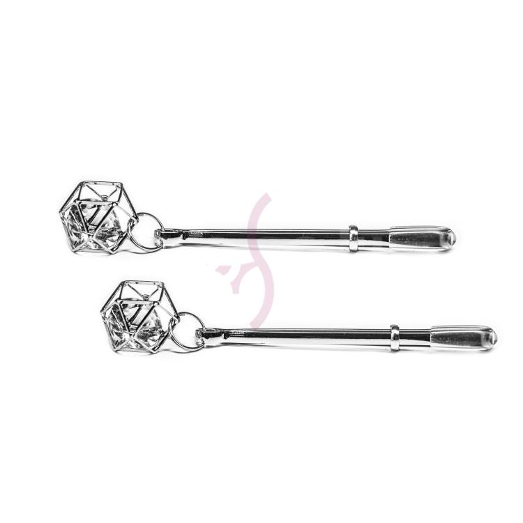 Эти зажимы очень нежные на первый взгляд, но ощутимо сжимающие до сладострастного удовольствия. Сила сжатия регулируется с помощью специальных колечек, которые можно перемещать вверх-вниз и наслаждаться реакцией и стонами партнерши. На конце зажимов для сосков - очаровательные стеклянные подвески со стразиком внутри. Розоватая фурнитура, выполненная из качественного металла, прослужит долгие годы и не потеряют качество со временем. Идеальны для БДСМ практик, легкого доминирования, а так же в качестве подарка для женщины, жены, подруги, девушки.